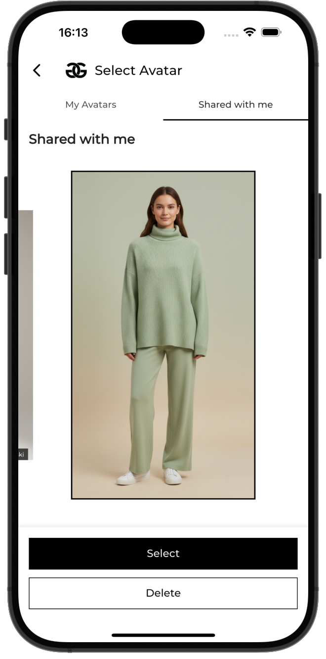 Klient dzieli się z Tobą swoim awatarem. Od tej chwili każda stylizacja, którą tworzysz, jest nakładana na jego sylwetkę — nie na mannekina, nie na modelkę agencyjną. Na niego.